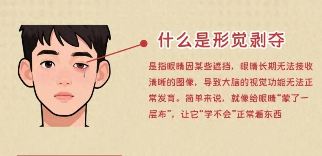 简单来说,形觉剥夺就是眼睛的“视觉信号”被“拦截”了。我们的视觉发育就像一颗种子,需要清晰的光线刺激作为“养分”,从出生到6岁是视觉发育的关键期,这时候如果视网膜长期接不到清晰的图像信号,大脑的视觉功能就会停止发育,最终形成形觉剥夺性弱视。